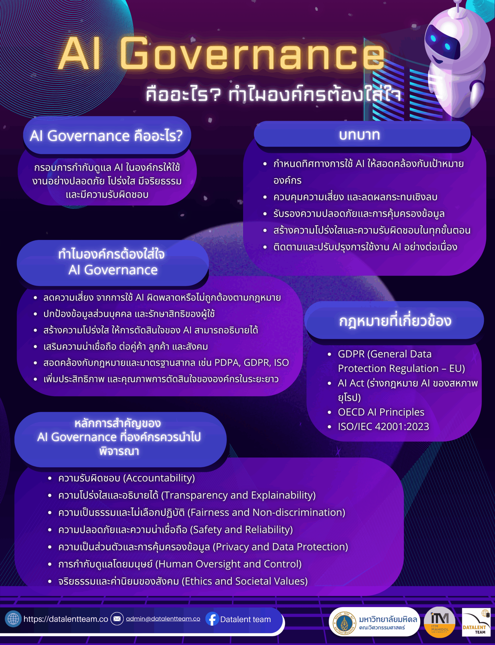 “กรอบการกำกับดูแลและบริหารจัดการการใช้ปัญญาประดิษฐ์ (AI)” เพื่อให้การพัฒนาและใช้งาน AI เป็นไปอย่าง โปร่งใส ปลอดภัย มีจริยธรรม และรับผิดชอบได้ (Responsible AI)