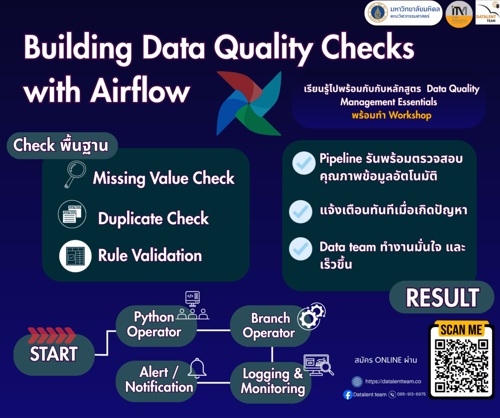 อย่าให้ Pipeline แค่ “รันได้” แต่ต้อง “มั่นใจได้ว่าข้อมูลถูกต้อง” ด้วย! สร้างระบบตรวจสอบคุณภาพข้อมูลอัตโนมัติด้วย Airflow พร้อม Alert ทันทีเมื่อข้อมูลผิดปกติ