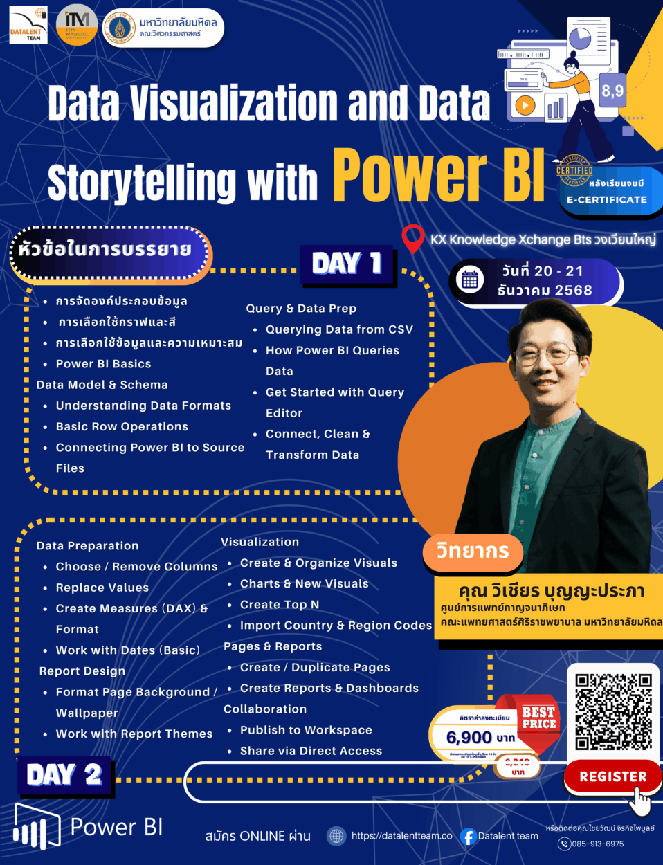 แนะนำการเลือกและสร้างกราฟให้เหมาะกับข้อมูล เช่น Bar, Line, Pie และ Card เพื่อสื่อสารข้อมูลให้เข้าใจง่าย อย่างมืออาชีพ
